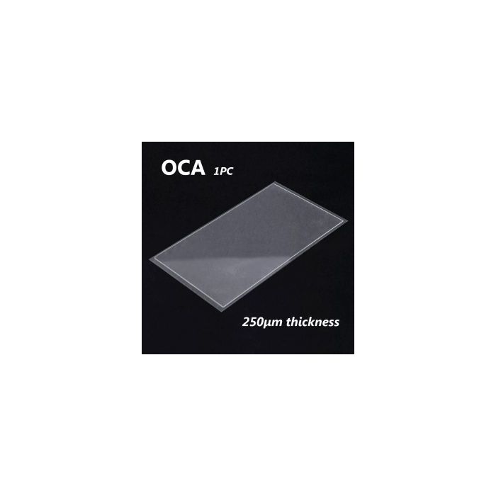 | Description | Det optiskt klara limmet (OCA) tejp filmen är en mycket specialiserad film som ger utmärkt klarhet och vidhäftning till olika typer av transparenta substrat. Tjocklek: 0,25 mm. |